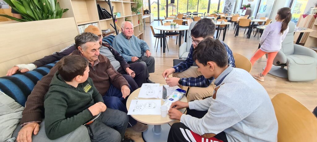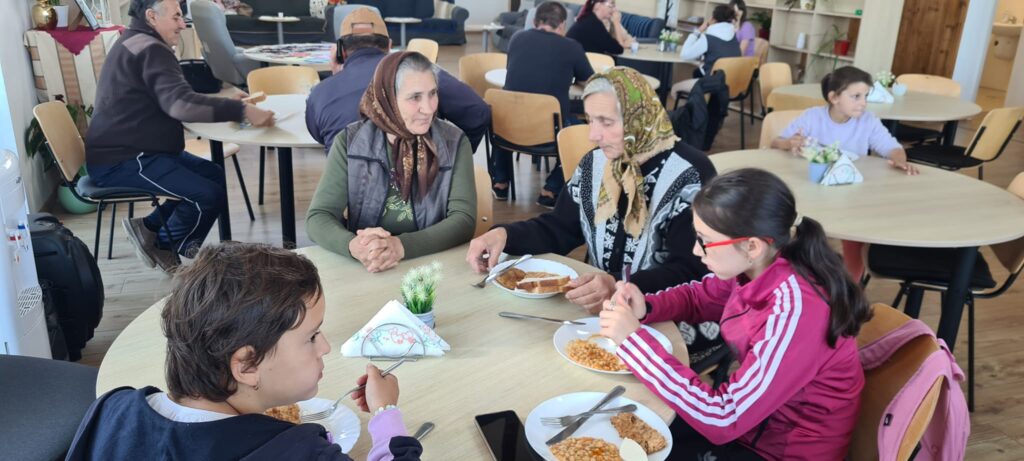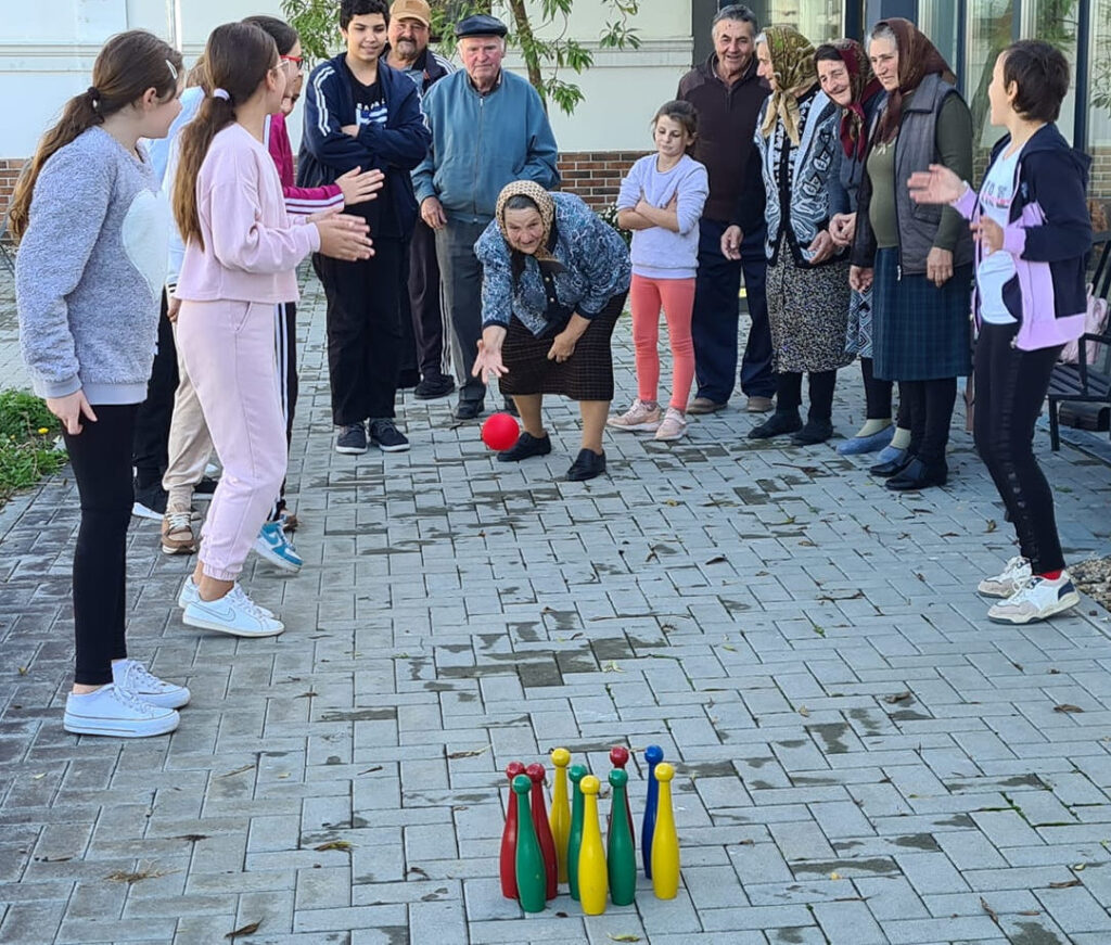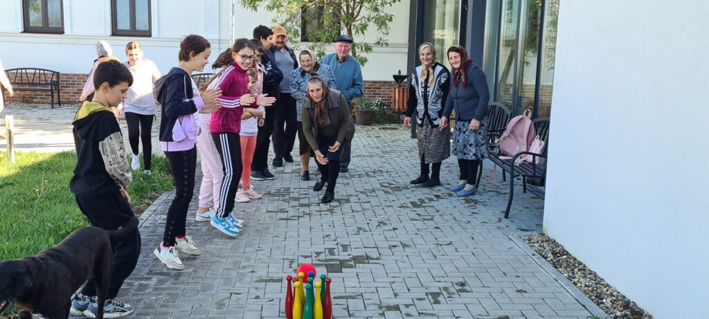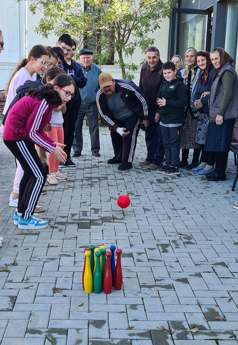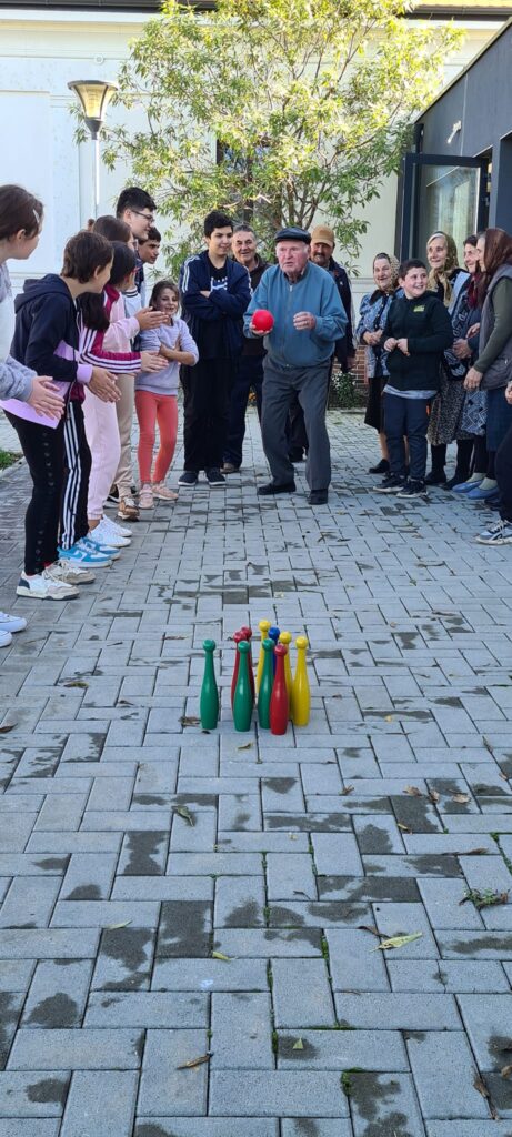 După ce au ajuns în Centrul nostru, unde îi așteptau bunicii noștri, copiii împreună cu bunicii au desenat, au jucat popice, au stat împreună și au mâncat prânzul.